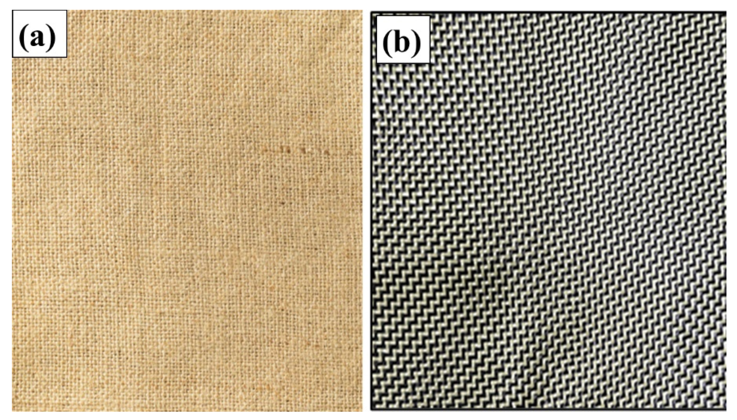 Figure 1. Materials used: (a) banana fibre; (b) carbon–Kevlar intraply fibre.