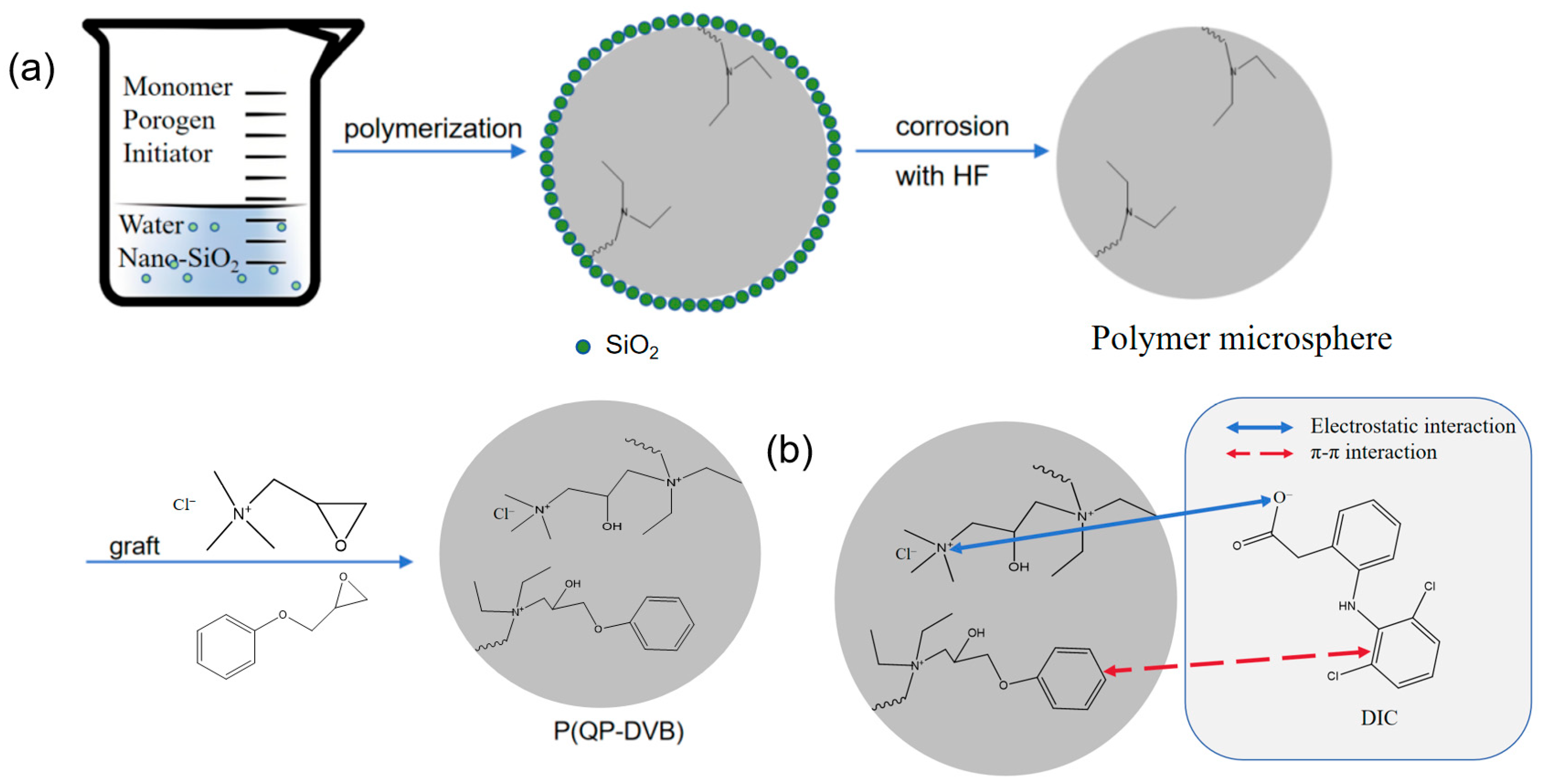 Bifunctionalized Microspheres via Pickering Emulsion Polymerization for Removal of Diclofenac from Aqueous Solution
