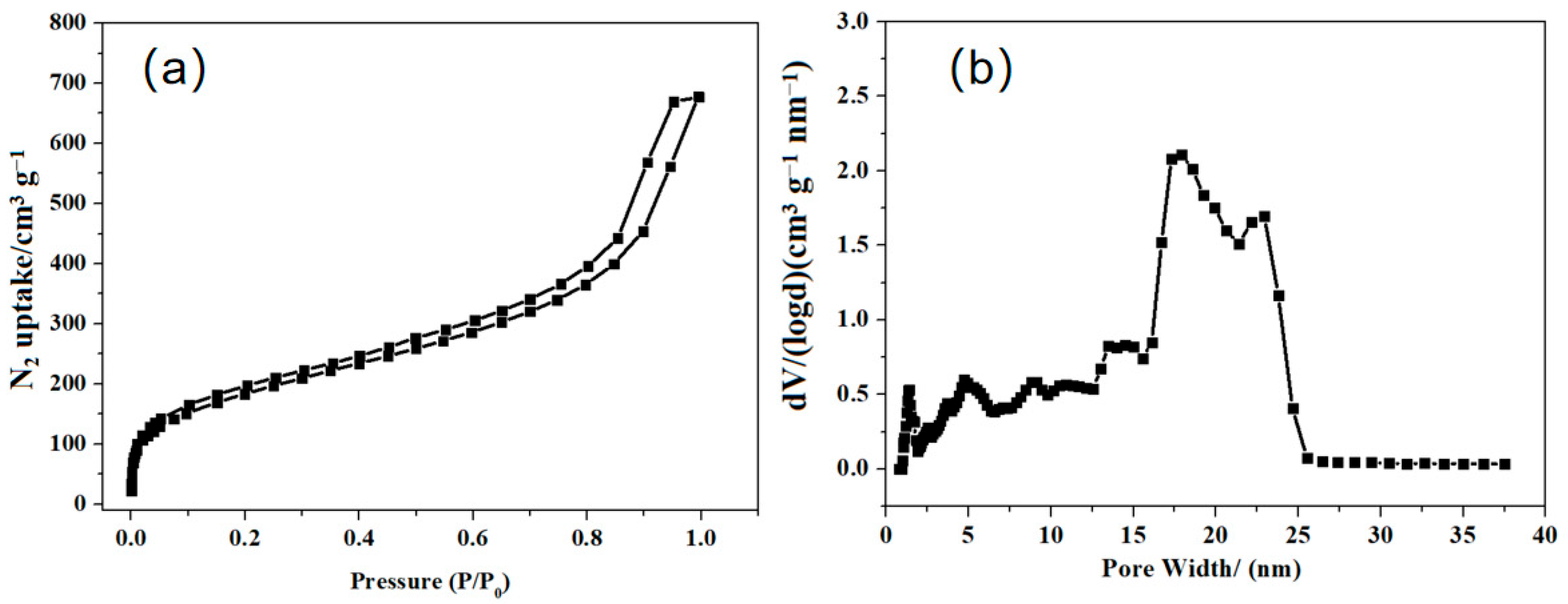 | SBET (m2 g−1) | Pore Volume (cm3 g−1) | Pore Size (nm) | |