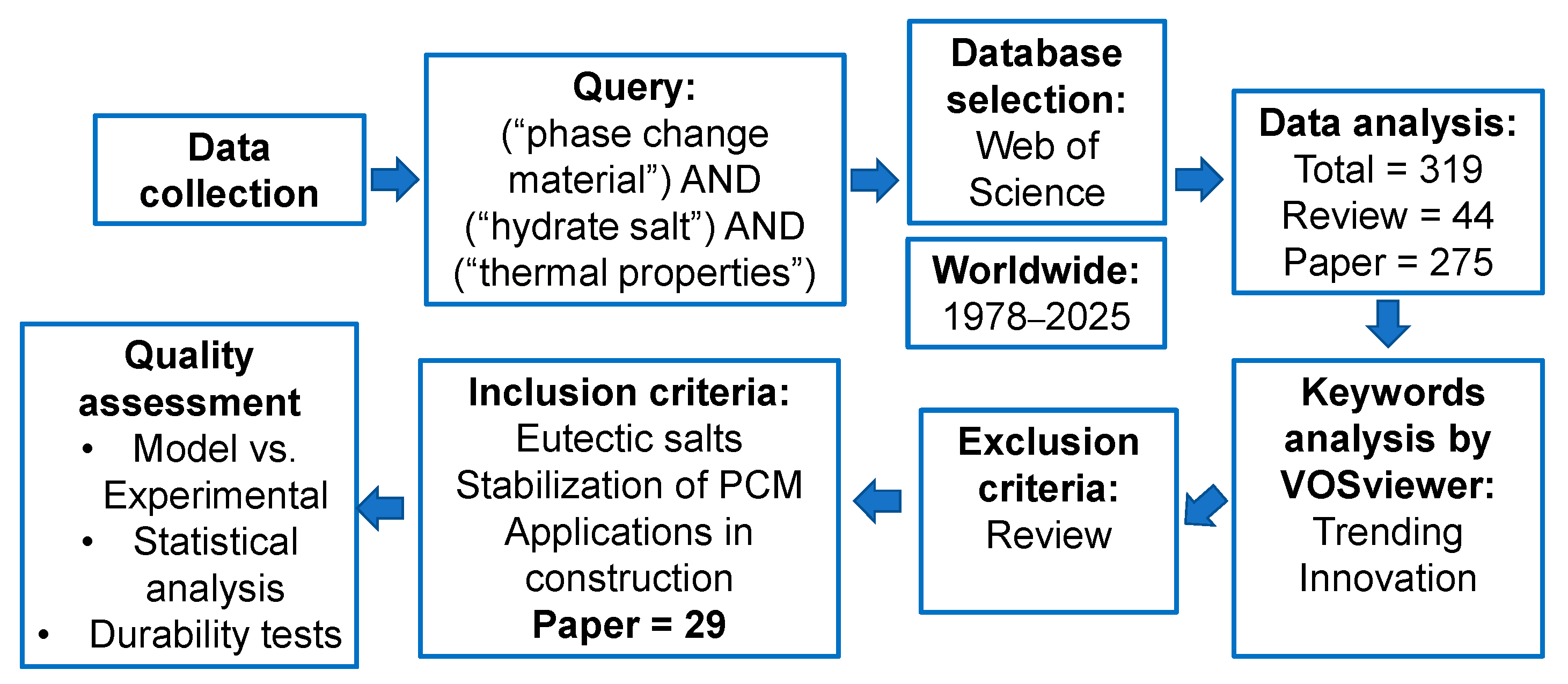 In addition, other prominent keywords such as “phase separation”, “nucleation”, “graphite”, and “optimization” were also considered in the information search and development for this manuscript. These terms are used in the literature both to describe specific challenges and to propose solutions in studies involving eutectic salts as part of the synthesis of composite materials.