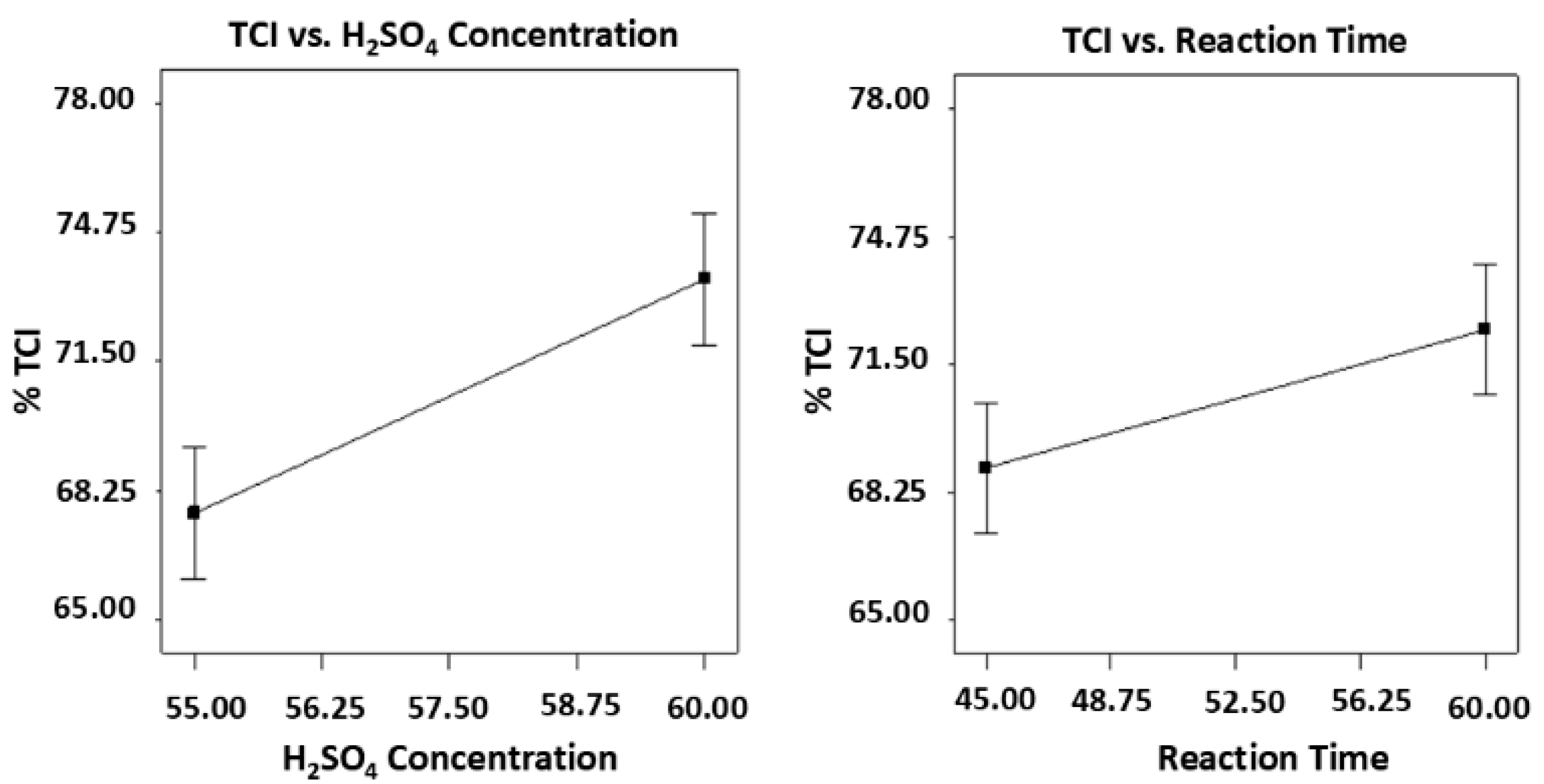 | H2SO4 Concentration, wt% | 55 | 60 | Yield, TCI, ATR-FTIR |