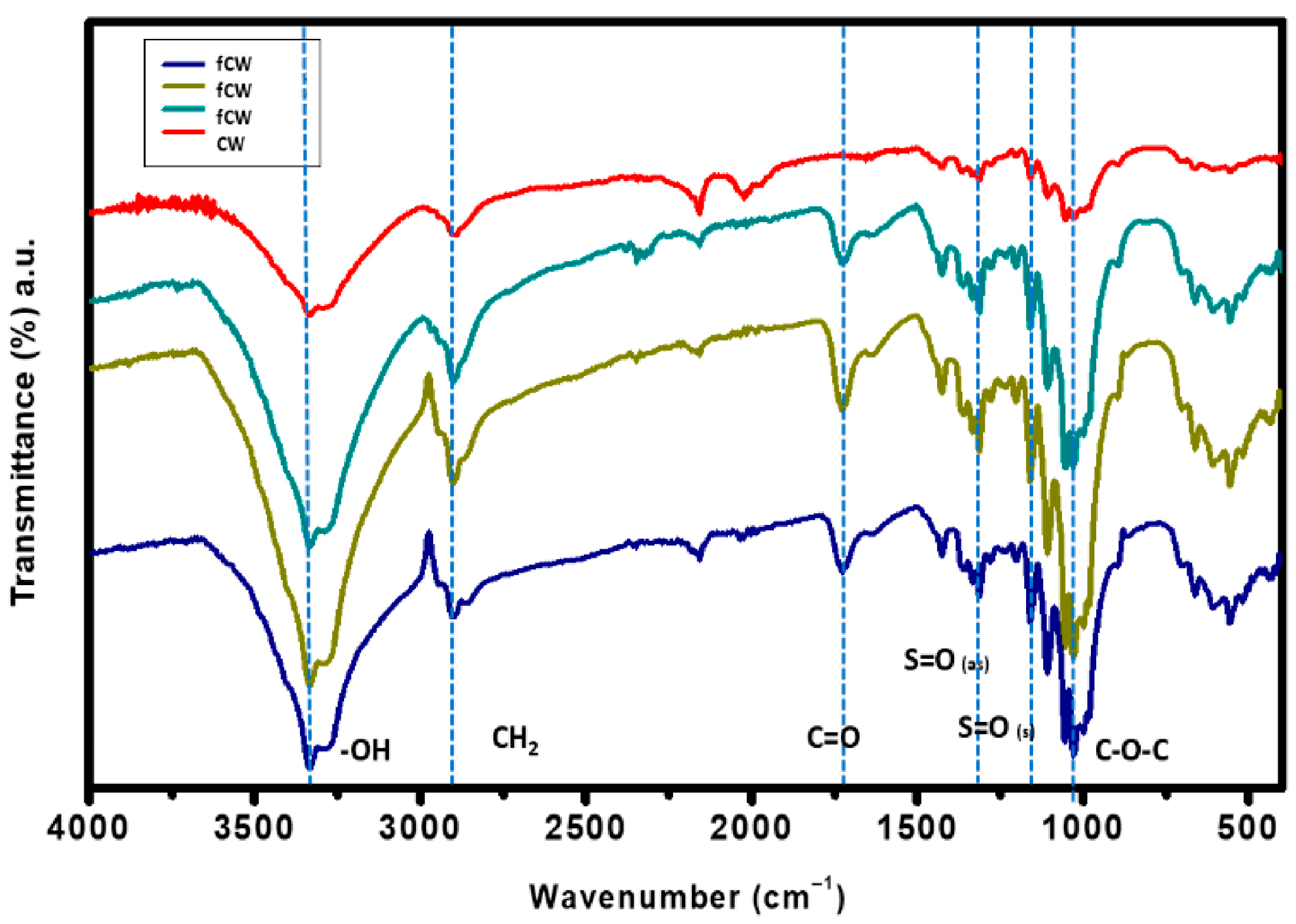 3.4. Effects of Acid Hydrolysis on Structural Composition of CWs
