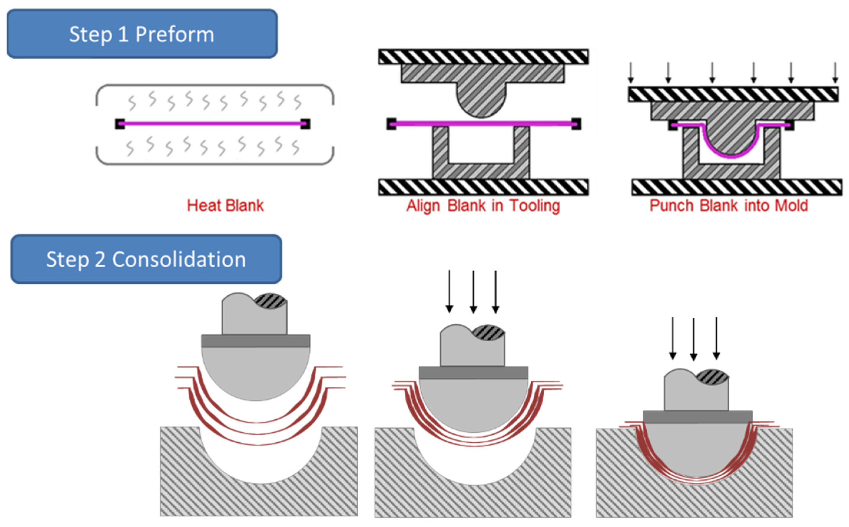 - Harrison, P.; Gomes, R.; Curado-Correia, N. Press forming a 0/90 cross-ply advanced thermoplastic composite using the double-dome benchmark geometry. Compos. Part A Appl. Sci. Manuf. 2013, 54, 56–69. [Google Scholar] [CrossRef]