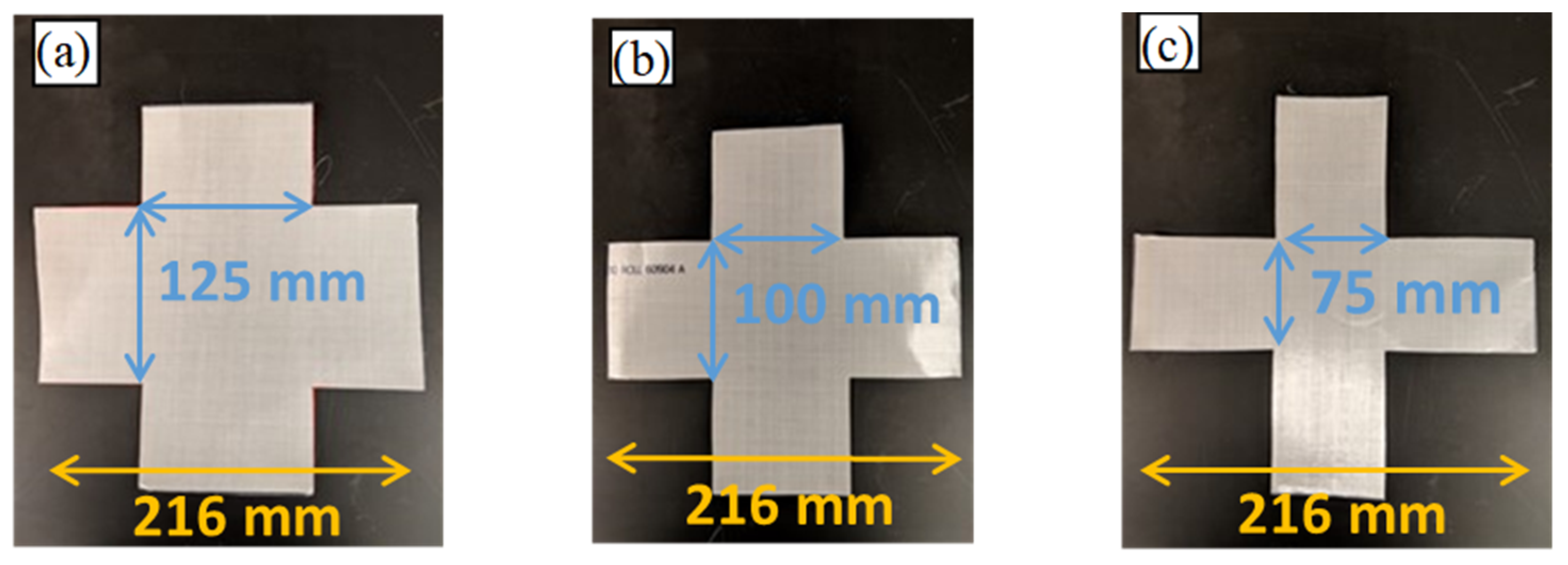 - Rashid, B.; Razali, N.; Zakaria, M.S.; Ramlan, M.Z.H.; Hamdan, H.; Sharif, E.A.; Muhammad, N.; Rashidi, S.A. A Study on the Thermal Distribution of the Thermoforming Process for Polyphenylene Sulfite (Polyphenylene Sulfide) PPS Composites Towards Out of Autoclave Activity. Pertanika J. Sci. Technol. 2024, 32, 49–60. [Google Scholar] [CrossRef]