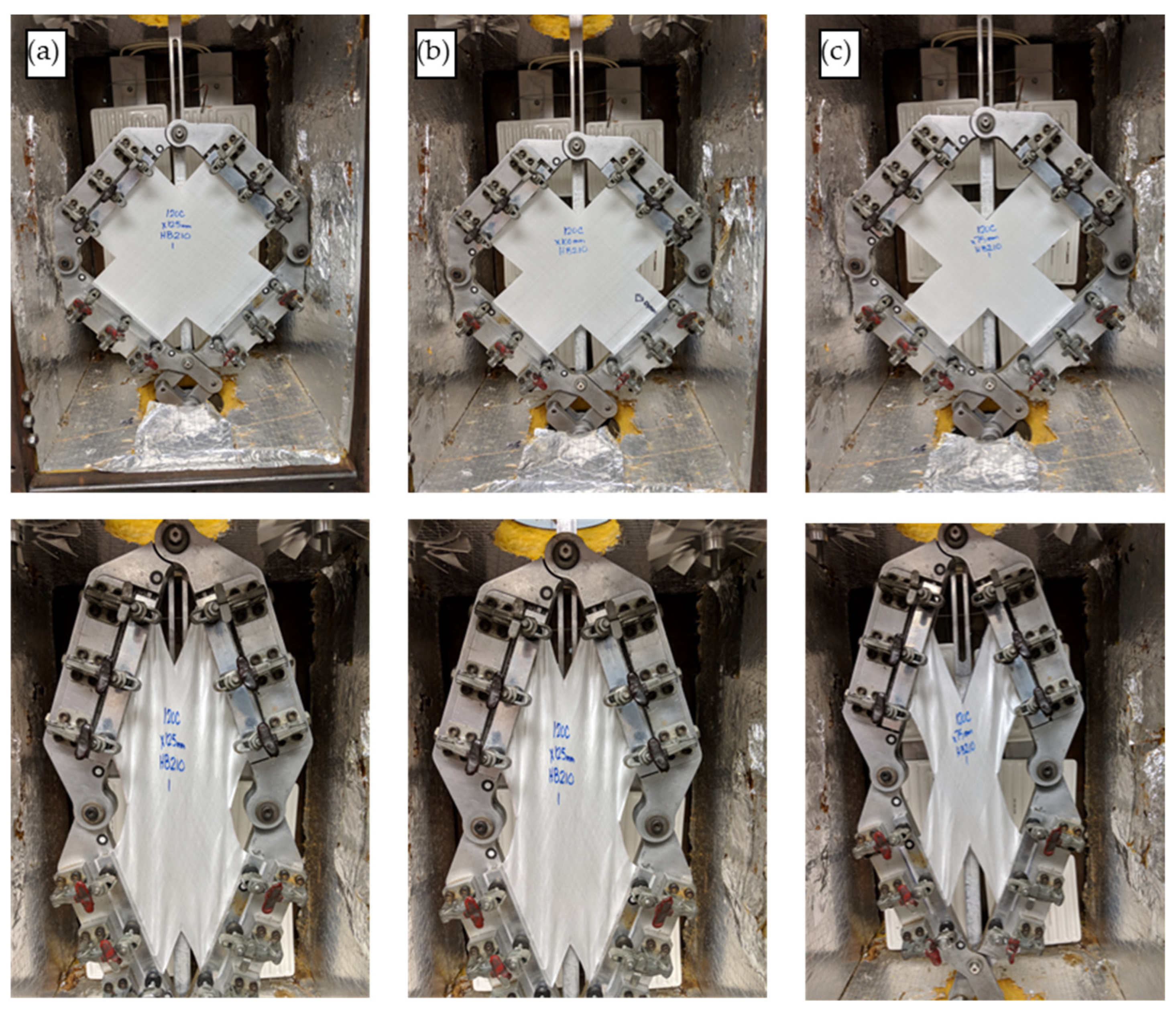 - Härtel, F.; Harrison, P.G. Evaluation of Normalisation Methods for Uniaxial Bias Extension Tests on Engineering Fabrics. Compos. Part A Appl. Sci. Manuf. 2014, 67, 61–69. [Google Scholar] [CrossRef]