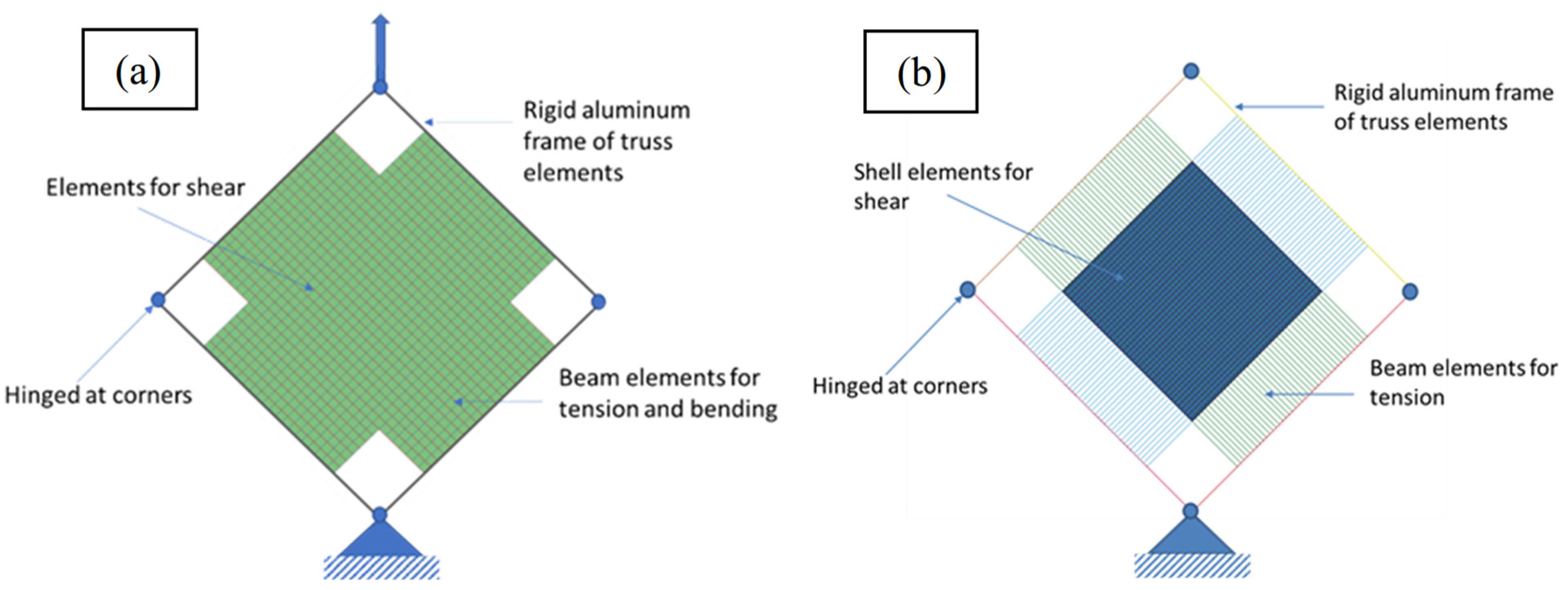- Peng, X.Q.; Cao, J.; Chen, J.; Xue, P.; Lussier, D.S.; Liu, L. Experimental and numerical analysis on normalization of picture frame tests for composite materials. Compos. Sci. Technol. 2004, 64, 11–21. [Google Scholar] [CrossRef]