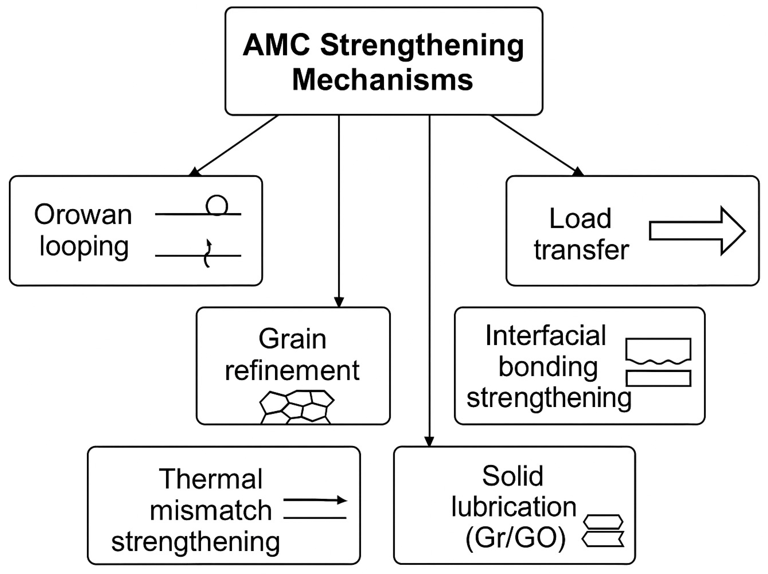 - Strengthening mechanisms: diffusion-induced precipitation, Orowan looping, load transfer, thermal mismatch strengthening, grain refinement, and interface-mediated effects;