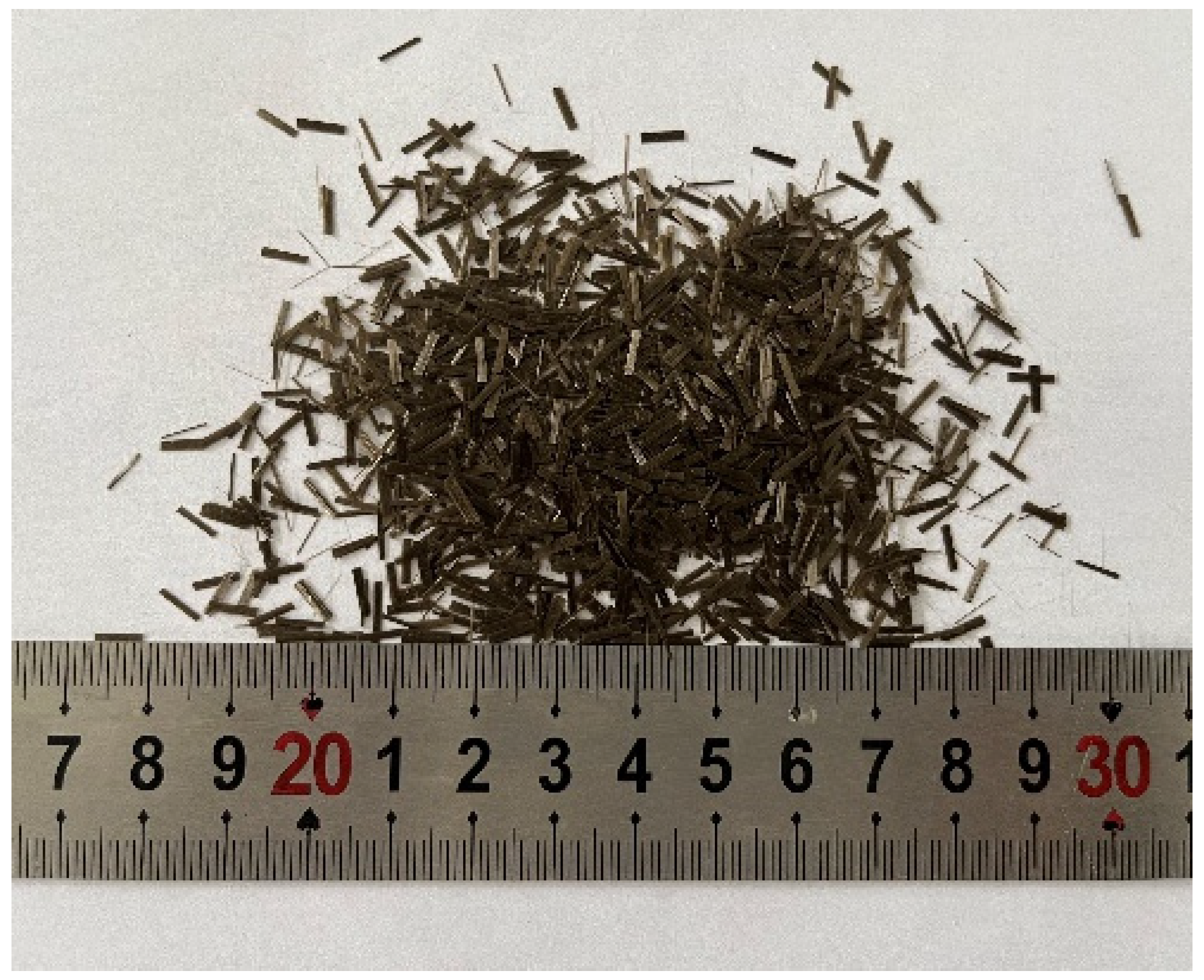 - Grzymski, F.; Musiał, M.; Trapko, T. Mechanical properties of fiber reinforced concrete with recycled fibers. Constr. Build. Mater. 2019, 198, 323–331. [Google Scholar] [CrossRef]