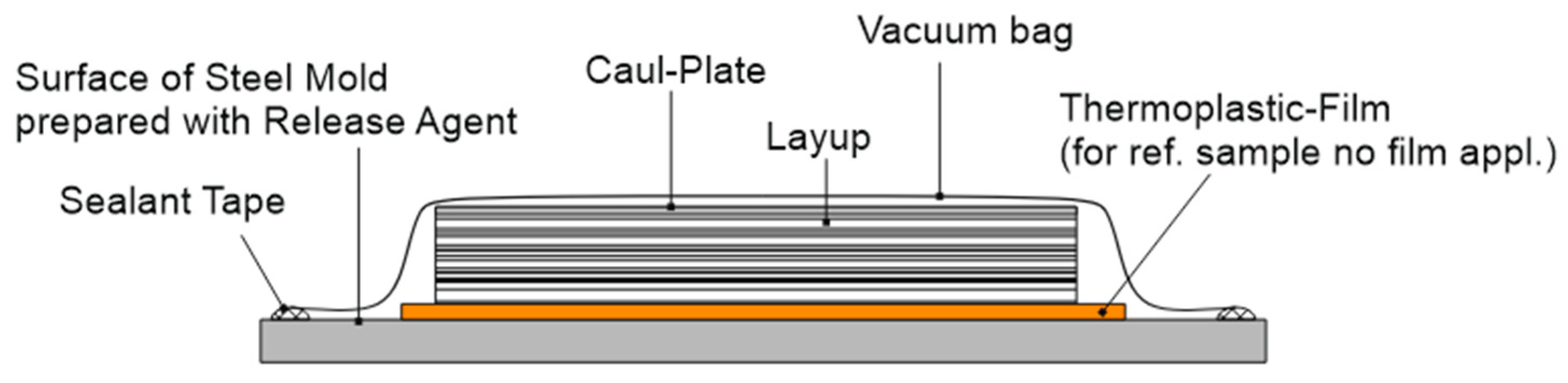 - Bruckbauer, P. Struktur-Eingenschafts-Beziehungen von Interphasen zwischen Epoxidharz und thermoplastischen Funktionsschichten für Faserverbundwerkstoffe; Verlag Dr. Hut: München, Germany, 2019; ISBN 9783843938945. [Google Scholar]