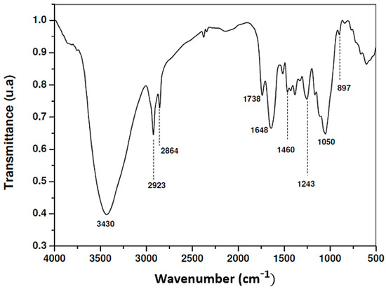 The FTIR analysis was carried out at room temperature, with 45 spectral scans recorded to obtain the spectrum in the wavelength range from 4000 to 400 cm−1 with a resolution of 4 cm−1.