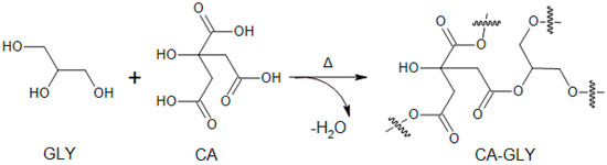 - Halpern, J.M.; Urbanski, R.; Weinstock, A.K.; Iwig, D.F.; Mathers, R.T.; Von Recum, H.A. A Biodegradable Thermoset Polymer Made by Esterification of Citric Acid and Glycerol. J. Biomed. Mater. Res. Part A 2014, 102, 1467–1477. [Google Scholar] [CrossRef] [PubMed]