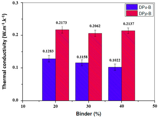 Table 2 shows the percentage of binder used, in relation to the mass of fibers (short fibers, DPs, or powder, DPp), for each composite. The B-number defines the % of binder used on the formulation.