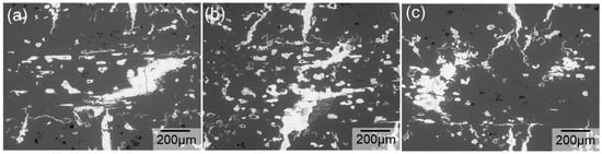 Typical microstructures for prepared composites: (a) Z20, (b) Z36, and (c) Z80 [50].