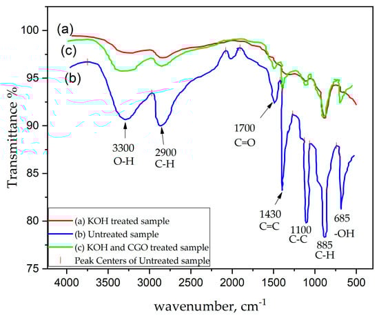 Figure A3. FTIR spectra of 4.0 wt.% KOH and CGO treated jute fiber–reinforced epoxy composite.