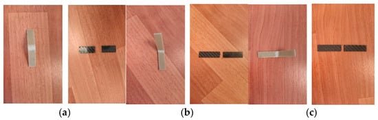 Following manufacture, the GFRP and CFRP composite plates measured 500 mm × 500 mm and had a measured thickness of 2 mm. The GFRP and CFRP composite plates are shown in Figure 1a,b. Eight layers of 300/320 gr/m2 twill GFRP and eight layers of 245 gr/m2 twill CFRP composite sheets were cut on a circular saw (watered) in accordance with the standards at the Composite Testing and Research Laboratory of the Mechanical Engineering Department of Dokuz Eylul University for the 0 + 90 orientation Charpy impact tests and three-point bending test TS EN ISO 14125 [18] (Figure 1).