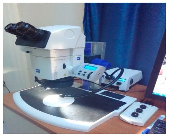 To obtain the microscopic digital camera images of the CFRP and GFRP samples (to detect the damage after the Charpy impact and three-point bending tests), the ZEISS Stereo Discovery.V12 microscopic imaging device in Dokuz Eylul University, Metallurgical and Materials Engineering Department, Metallography Laboratory was used (Figure 15).