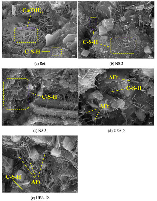- The UEA expansive agent reacts with Ca(OH)2 to form AFt, which reduces the porosity of the concrete matrix. However, when the dosage of the expansive agent is too high, excessive volume expansion results in numerous microcracks, increasing the porosity and deteriorating the concrete’s performance. To ensure that concrete retains excellent properties after the addition of UEA expansive agent, the dosage should not exceed 9%.