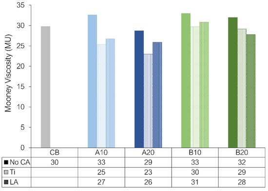 The viscosity of the compounds was measured at 100 °C using a Mooney viscometer 2000E (Alpha Technologies, Hudson, OH, USA) with a large rotor, following the ASTM D1646 standard. One measurement per compound was performed.