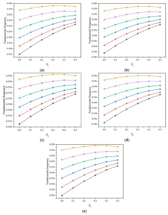 - For the FG-V and FG-O plates, the higher values of Sf and Sg (dispersed distributions of fibers and graphene platelets) result in lower fundamental frequencies, indicating reduced vibrational stability.
