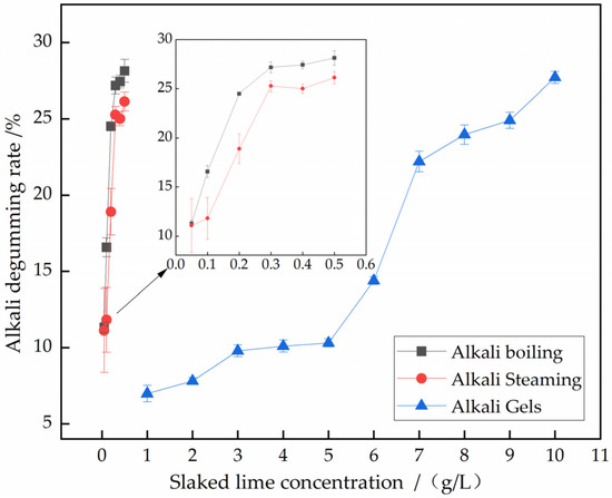 Effect of alkaline agent amount on degumming rate of silk gauze.