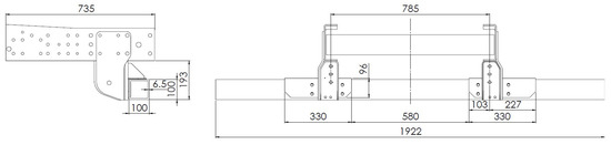 | Brackets | 4.38 (S460Q) | 14.76 | 4.59 (Al 7075-T6) | 23.3 | 2.22 (Al 7075-T6) | 10.71 |