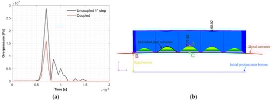 - Explicit modeling of added mass: in the second step, a numerical model is set up with water explicitly represented, performing a CEL simulation to account for FSI without solving the shock wave propagation.
