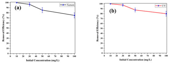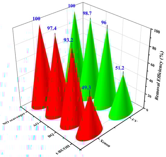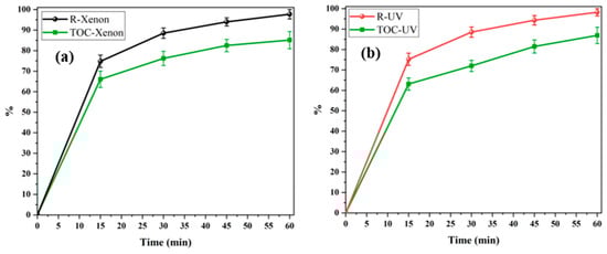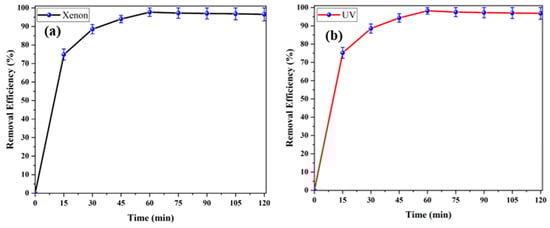 3.2. Photocatalytic Decomposition of ACT Under Ultraviolet and XenonXenon-Light Illumination