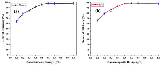 | Catalyst | Light Source (Power Values) | pH | Dose of Catalyst (g/L) | Initial Concentration (mg/L) | Irradiation Time (min) | Removal Efficiency (%) | Reference |