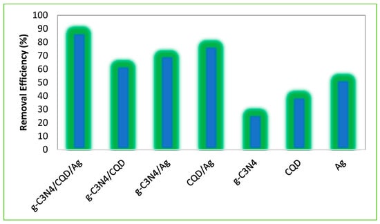 3.7. Comparison of the Photocatalytic Performance of g-C3N4, CQD, Ag, and Their Composites, in the Photocatalytic Removal Efficiency of Acetaminophen Under UV Light