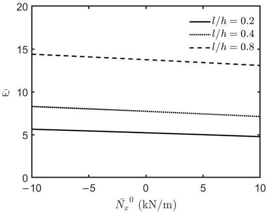 where ε x x n l and ε y y n l are the von Kármán nonlinear strains expressed as ε x x n l =   1 / 2 w , x 2 and ε y y n l =   1 / 2 w , y 2 .   N ¯ x , N ¯ y , R ¯ x , R ¯ y , T ¯ x , and T ¯ y denote the generalized initial in-plane force resultants induced by the external magneto-electro-thermo-mechanical loads, such that N ¯ x = N ¯   x   0 + N ¯   x   t + N ¯   x   e + N ¯   x   q ,   N ¯ y = N ¯   y   0 + N ¯   y   t + N ¯   y   e + N ¯   y   q ,   R ¯ x = R ¯   x   0 + R ¯   x   t + R ¯   x   e + R ¯   x   q ,   R ¯ y = R ¯   y   0 + R ¯   y   t + R ¯   y   e + R ¯   y   q ,   T ¯ x = T ¯   x   0 + T ¯   x   t + T ¯   x   e + T ¯   x   q , and T ¯ y = T ¯   y   0 + T ¯   y   t + T ¯   y   e + T ¯   y   q , the detailed expressions of which are given in Appendix B.