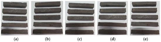 Samples of composite materials: (a) SPC60; (b) SPC 65; (c) SPC 70; (d) SPC 75; (e) SPC 80.