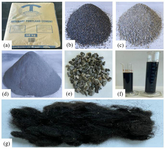 (a–g) Materials of newly prepared concrete mixes.