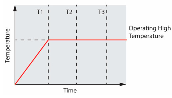Figure 5 shows the temperature setpoint and step times required for the test. As shown in the table, the temperature gradient from T 0 to T 1 is not specified. Once the temperature stabilizes in the environmental chamber, the devices are tested for at least 2 h.