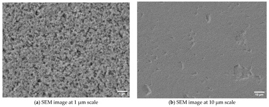 Figure 10 shows the SEM images captured after performing the environmental tests on the samples. The images depict the microstructure at 1   μ m and 10   μ m . Compared to Figure 2, the microstructure does not show any deterioration or significant changes.