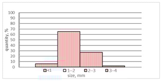 All components of the charge were pre-ground in an Emax ball mill for 10 min. The volume of the grinding jar was 50 mL, with six 12 mm grinding balls made of tungsten carbide. The jar material was stainless steel, and the rotation speed was 1000 rpm. The dispersion of all components was 90% represented by a fraction of 2–3 mm. The particle size distribution of the materials was determined using an AS 200 control analytical sieving machine (Retsch, Haan, Germany).
