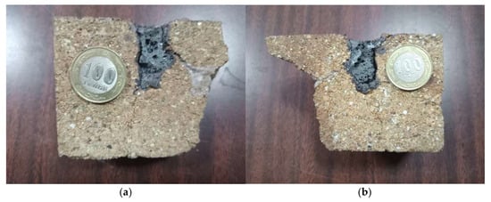 Samples after slag resistance testing: (a) Sample 0; (b) Sample 3 after sintering at 1100 °C.