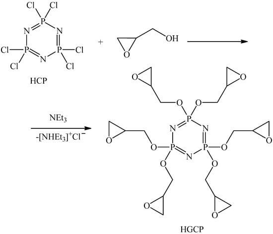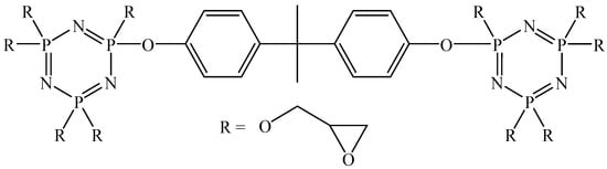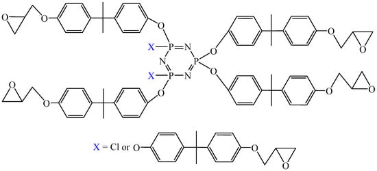 - Terekhov, I.V.; Filatov, S.N.; Chistyakov, E.M.; Borisov, R.S.; Kireev, V.V. Synthesis of oligomeric epoxycyclotriphosphazenes and their properties as reactive flame-retardants for epoxy resins. Phosphorus Sulfur Silicon Relat. Elem. 2017, 192, 544–554. [Google Scholar] [CrossRef]
