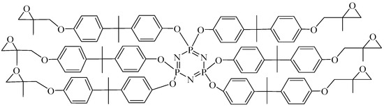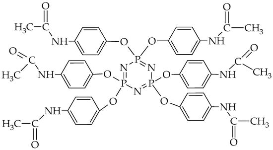 - Chistyakov, E.M.; Terekhov, I.V.; Shapagin, A.V.; Filatov, S.N.; Chuev, V.P. Curing of Epoxy Resin DER-331 by Hexakis (4-acetamidophenoxy) cyclotriphosphazene and Properties of the Prepared Composition. Polymers 2019, 11, 1191. [Google Scholar] [CrossRef]