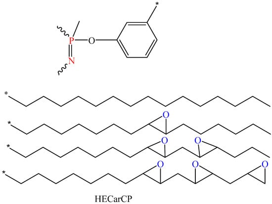 Epoxy resins are among the most widely utilized thermoset polymers, renowned for their exceptional mechanical properties, chemical resistance, and resilience to corrosion [1]. Additionally, they exhibit low shrinkage and effective electrical insulating capabilities. Composites and nanocomposites reinforced with natural fibers, adhesives, coatings, and binders based on epoxy resins find extensive applications in daily life, electronics, and the automotive industry [2,3,4,5,6]. Adhesive formulations incorporating epoxy resins contribute to the longevity of steel bridge surfaces. At the same time, their incorporation into concrete and asphalt enhances frost resistance, mitigates chloride penetration through cracks, and improves both compressive and tensile strength, making them promising materials in construction [7,8,9,10]. However, conventional industrial epoxy resins typically possess a low limiting oxygen index (LOI) value (for instance, DGEBA/DDM has an LOI of 21.8%) and do not meet the UL-94 vertical combustion test criteria, thus presenting flammability concerns. To address this flammability issue, modifications are made to the resins using various inorganic and organo-inorganic compounds, which effectively increase the LOI value of epoxy resins [11].