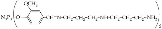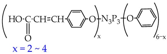 - Chistyakov, E.M.; Panfilova, D.V.; Kireev, V.V.; Volkov, V.V.; Bobrov, M.F. Synthesis and properties of hexakis-(β-carboxyethenylphenoxy) cyclotriphosphazene. J. Mol. Struct. 2017, 1148, 1–6. [Google Scholar] [CrossRef]
