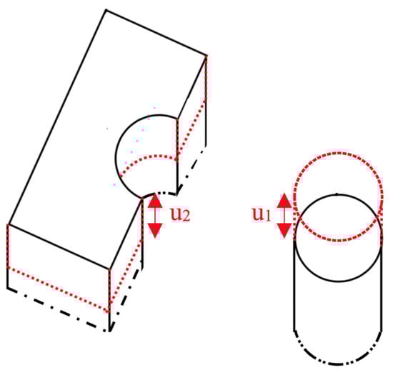 where u1 and u2 represent the individual displacements of the FRP anchor and the concrete block, respectively, as illustrated in Figure 3.