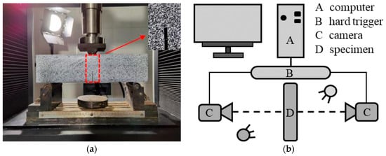 Fracture test: (a) Test set up; (b) Schematic diagram of DIC. Reprinted with permission from [66].