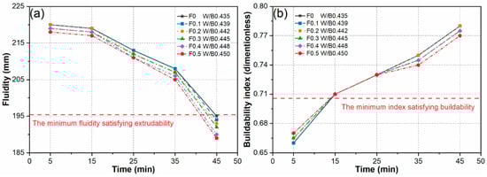 Geopolymer mortar: (a) Effect of fibre on fluidity; (b) Effect of fibre buildability index. Reprinted with permission from [42].