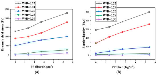 Fresh properties: (a) Dynamic yield stress versus fibre dosage; (b) Plastic viscosity versus fibre dosage. Data adapted from [74].