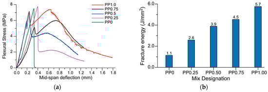 PP fibre is a synthetic linear polymer obtained through propylene polymerization [41]. Many of its characteristics are beneficial for use in 3D-printed concrete, such as its lightweight properties, elevated strength, exceptional toughness, resistance to corrosion, and adequate heat insulation [41]. It is a fibre that falls into the low elastic modulus group of fibres. PP has good ductility and is highly effective in mitigating plastic shrinking and reducing cracking [39]. In a study [42], the addition of 0.5% fibre led to a 27% reduction in shrinkage when put in comparison to the specimen without fibres. This occurs due to the energy that the fibres can absorb and the orientation of the fibres, which has a bridging effect through the cracks in the concrete-caused shrinkage [42].
