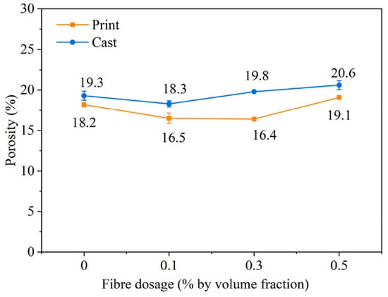 Among these fibres, polypropylene (PP) fibres offer distinct advantages, making them particularly suitable for reinforcing 3D-printed concrete. PP fibres are characterized by low density, excellent chemical resistance, affordability, and ease of dispersion within concrete mixtures [19,20,21]. Studies indicate that PP fibres effectively improve buildability and mitigate shrinkage-induced cracking due to their fibre-bridging effect. This significantly enhances the interlayer bonding, reduces anisotropy in mechanical properties, and improves the overall toughness of 3D-printed concrete structures [22,23]. Although PP fibres can slightly reduce compressive strength due to fibre clustering and increased porosity, their benefits in controlling cracking and enhancing structural durability far outweigh these drawbacks, particularly when optimized through careful mix design.
