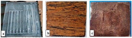 Jute fiber is a biological fiber made from Corchorus jute plant bark. It is mostly grown in Bangladesh, India, and China. Compared to other advancements with similar materials like natural fibers, the results are competitive. Jute is mainly cellulose (60–70%), hemicellulose (12–14%), and lignin (5–10%) []. It is called “the golden fiber” for its smooth, shiny texture. Jute fiber is important since it is renewable, decomposes naturally, and benefits the environment. This marks an alternative to synthetic fibers. In spite of its cost, great strength-to-weight ratio, and superior insulation, it absorbs moisture and has issues with quality []. Jute fiber is replacing synthetic fibers, metals, and alloys due to its economical, ecological, and technical benefits. Jute fiber-reinforced composites (JFRCs) increase mechanical properties by adding jute fibers to a polymer matrix []. These composites leverage jute fibers’ strength and stiffness and the polymer matrix’s ability to appropriately distribute stresses and protect fibers from environmental damage. JFRC research is important because of the growing need for eco-friendly materials. Using natural fibers like jute in polymer matrix composites reduces the environmental impact of composite products by replacing glass or carbon fiber. Moreover, JFRCs are a cost-effective option with sufficient mechanical properties for many technical applications []. Jute fiber-based composites are appropriate for many industries due to their benefits and environmental impact. JFRCs make car components like door panels, dashboards, and seat backs. This application reduces weight and boosts fuel economy. Construction companies employ JFRCs to make lightweight, durable partition boards, panels, and sheets for roofing []. The furniture industry uses JFRCs to make eco-friendly, attractive products. JFRCs can replace plastics in packaging, reducing waste. JFRCs’ broad range for applications and rising usage demonstrate their importance and potential for advancement. Despite the wealth of research on natural fiber composites, jute fiber-based composite production procedures and their influence on mechanical properties are understudied [].