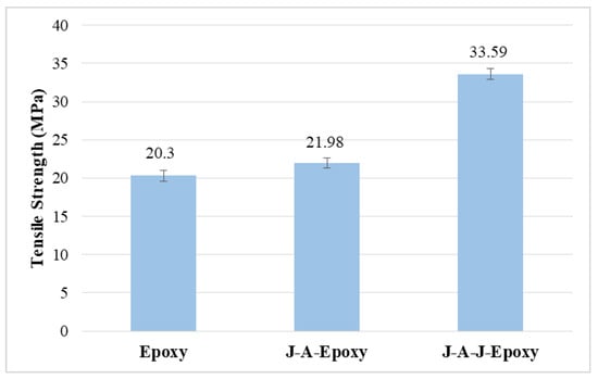 - According to the results of the tensile strength investigation, the specimen J-A-J-Epoxy has exceptional strength.