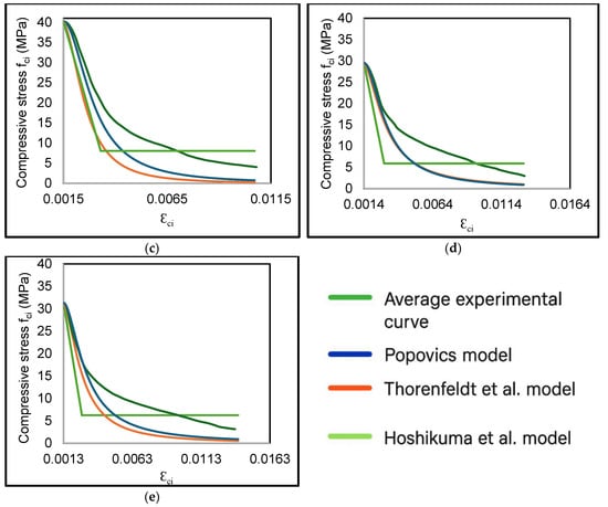 For the pre-peak predictions, the three models investigated in this paper match the experimental results as well and are suitable for use with BRC. For the post-peak predictions, the proposed behavior model ( > ) can be written from Equation (11).