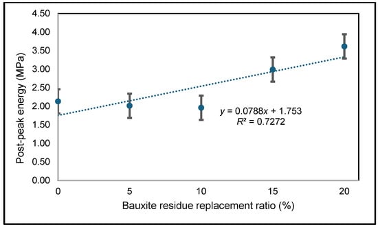 Average post-peak energy as a function of the bauxite residue replacement ratio (%).
